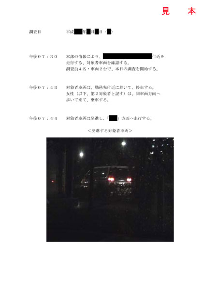 調査報告書例 - 浮気調査